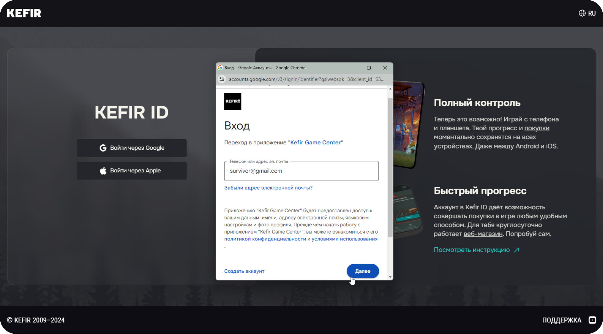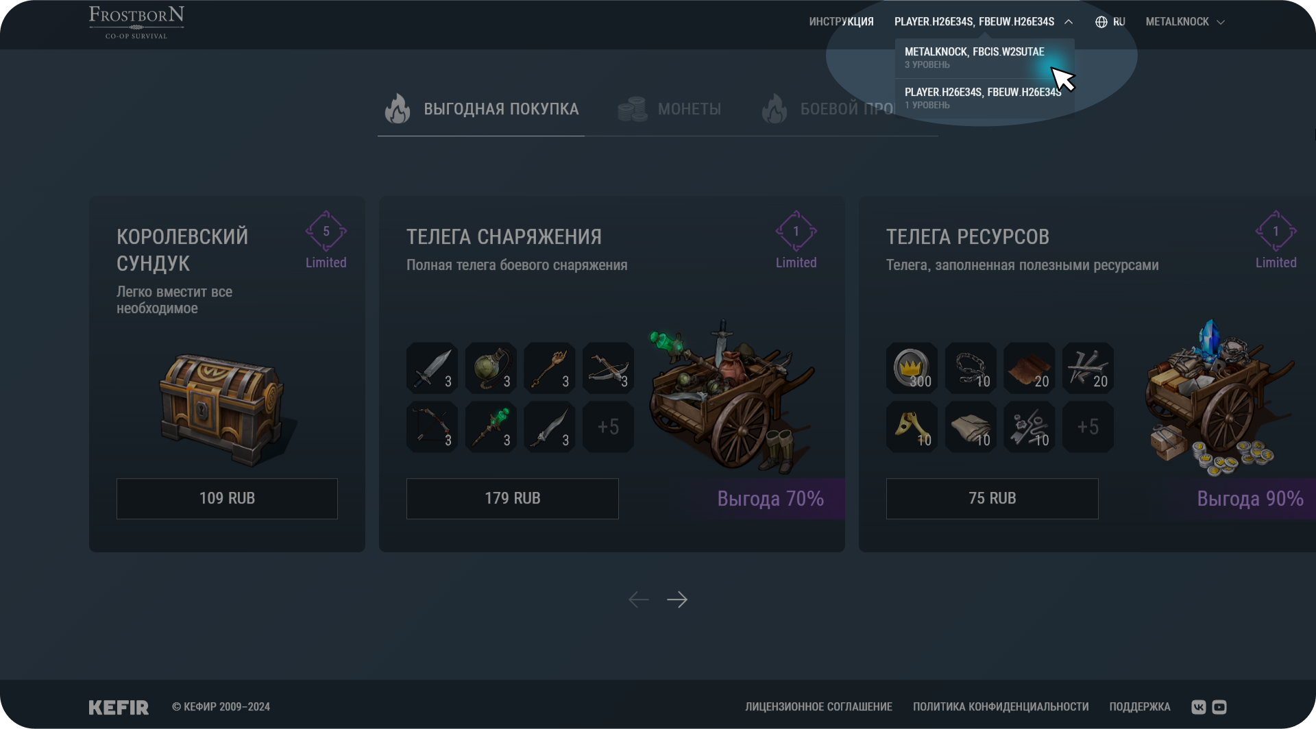 To make purchases in Frostborn WebShop, you need to connect your account to Kefir ID. To do so, follow these steps: