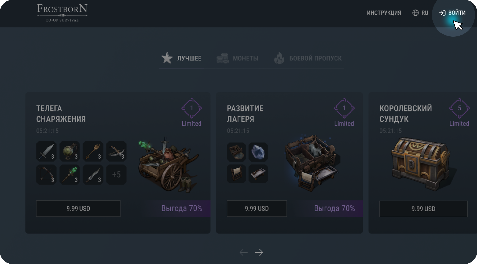 - Open the store at https://shop.kefirgames.com/frostborn